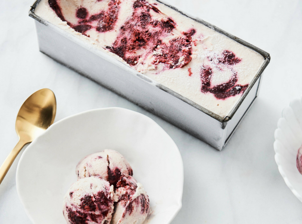 - Drag a butter knife through the blackberry ripple dots and into the nice cream mixture going down the length of the pan in a S-shaped pattern, to create a ripple effect. Cover surface of ice cream with a piece of baking paper and wrap in cling film. Freeze for at least 4 hours or overnight, until firm.