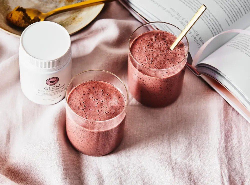 With antioxidant-rich blueberries, chia seeds for protein and our very own wholefood skin supplement, GLOW Inner Beauty Essential, this delicious smoothie is packed with nutrients that will feed your skin from the inside out...
