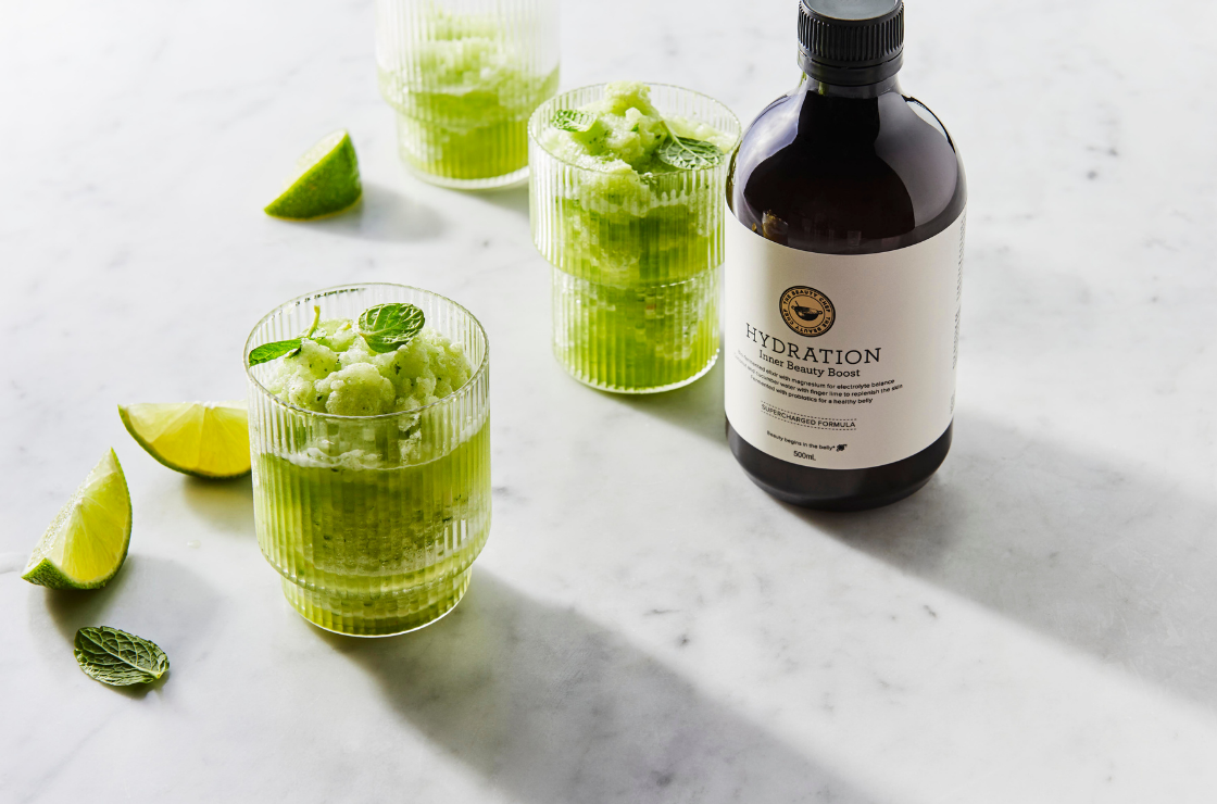 With a wonderfully refreshing flavour profile, this recipe is a delicious, nutrient-packed way to help restore your body’s hydration levels. Containing coconut and cucumber water, finger lime, trace minerals and magnesium for electrolyte balance and probiotics, the new supercharged HYDRATION Inner Beauty Boost helps to replenish thirsty, lacklustre skin from within and nourish your gut.