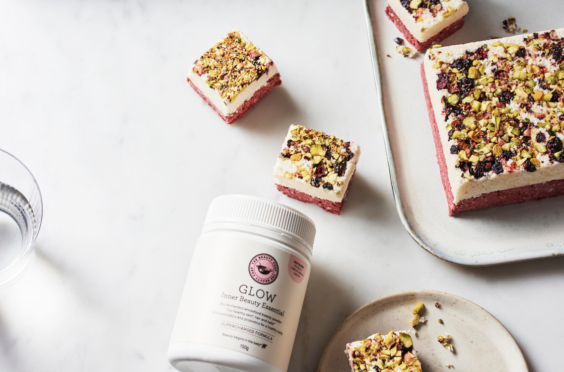 With 18 Certified Organic wholefoods, as well as pre- and probiotics to nourish your microbiome, our bio-fermented beauty powder, GLOW Inner Beauty Essential, takes this classic dessert recipe to new heights. The addition of coconut provides a satisfying dose of healthy fats, while antioxidant-rich blueberries protect against free radical damage to help prevent premature ageing.