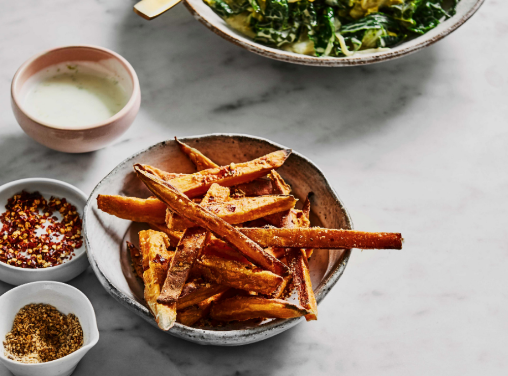 Sweet potato chips are moreish and the lime cream in this recipe takes them to another level of deliciousness. While I try to stay mostly dairy free when on a gut cleanse, a small amount of goat’s or sheep’s yoghurt gives lots of nourishment without the tummy compromise. This is because goat’s and sheep’s milk have smaller fat globules than cow’s milk, and a higher proportion of medium-chain fatty acids, making them easier to digest. While coriander offers anti-fungal properties, you can swap it for rosemary if you like, to give this recipe an Italian twist and to reap some added anti-inflammatory benefits.