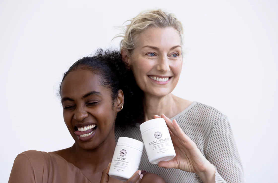 While both GLOW and GLOW AGELESS are designed to be your daily Inner Beauty Essential, the latter has been formulated for those aged 50 plus as it contains additional ingredients that target specific age-related concerns such as bone health and hormonal wellbeing.