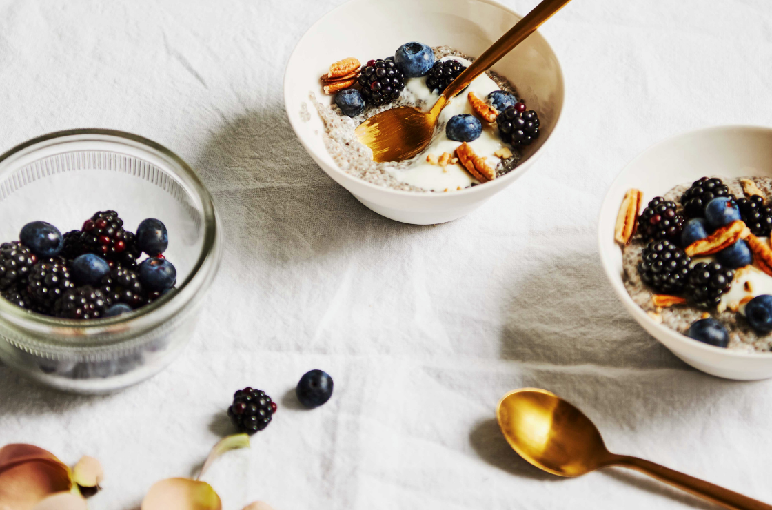 Chia seeds are rich in soluble fibre—making them the perfect companion to a sluggish digestive system—as well as moisturising omega 3 healthy fats for a plump and healthy complexion. A hint of fragrant cardamom aid digestion while the scattering of blueberries will help boost your microbiome.