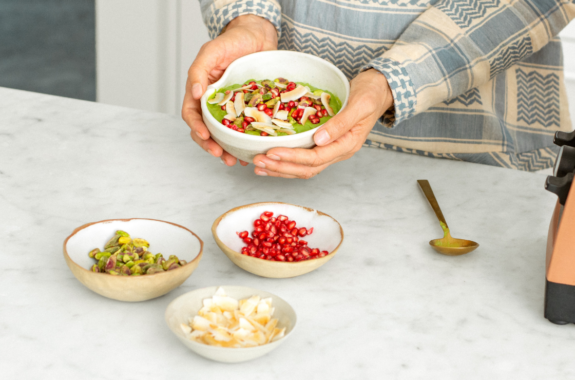 With creamy avocado, gut-loving spinach and our alkalising super-greens powder, DAILY SUPERGREENS, this smoothie bowl is perfect for when you need to realign.
