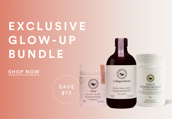 COLLAGEN contains a super-charged, concentrated blend of Certified Organic maqui berry, acai, papaya, blueberry, goji berry and pomegranate powders with grape seed extract, zinc and vitamin C. The potency of these skin-loving wholefood ingredients has been enhanced by The Beauty Chef’s exclusive Flora Culture™ fermentation process, making the nutrients more bio-available and better absorbed by your body’s cells. COLLAGEN is also rich in natural prebiotics and probiotics to balance your digestive tract and enhance your skin’s radiance.