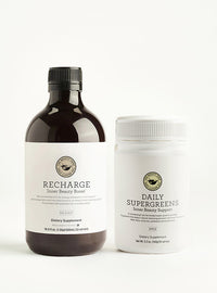 Curated to help realign the body, this bio-fermented duo works synergistically to support your natural cleansing processes, recharge your energy with activated vitamins B6 and B12, cultivate a calm complexion and nourish the gut.