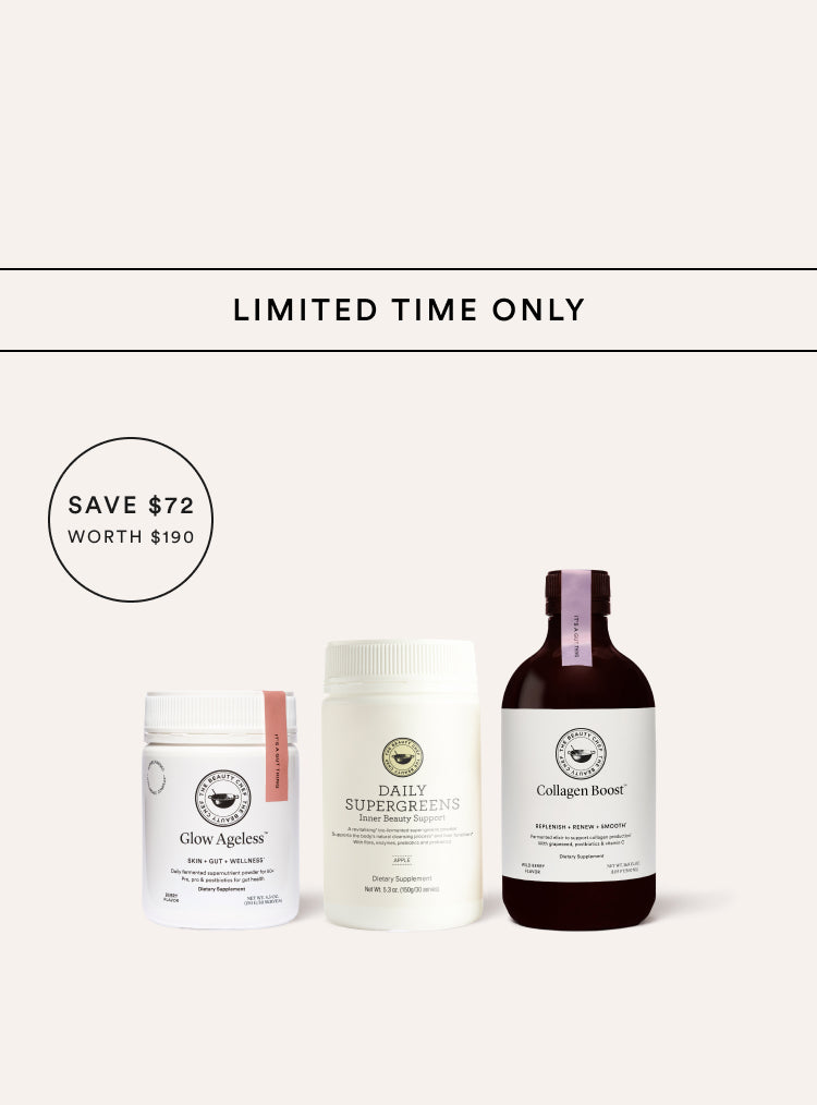 A limited-edition bundle exclusive to our Glow-Up Sale. Snap up three hero products in one special set to kickstart your wellness goals for 2026. Limited time only!