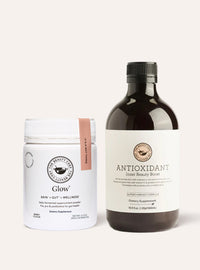 Mix 1 tsp (5g) of GLOW® and 1 tbsp (15ml) of ANTIOXIDANT in 200ml of water, a smoothie or your favourite drink. Can be taken together or separately.