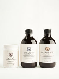 Designed to target specific skin concerns, this bio-fermented trio combines GLOW®—the foundation of your inner beauty routine—with COLLAGEN & ANTIOXIDANT Boosts to amplify the benefits of GLOW®.*