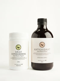 Mix 1 tbsp (15ml) of ANTIOXIDANT and 2 tsp (5g) of DAILY SUPERGREENS in 200ml of water, a smoothie or your favourite drink. Can be taken together or separately. For optimal results, both should be consumed daily in chilled or room temperature beverages.